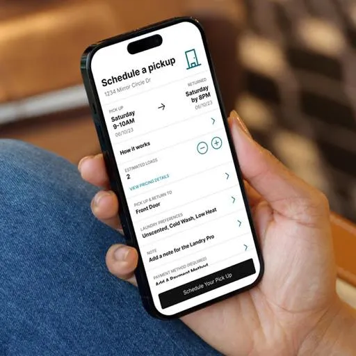 Laundry is processed at a Laundry Processing Center where each load is washed, dried, and folded before it is returned.